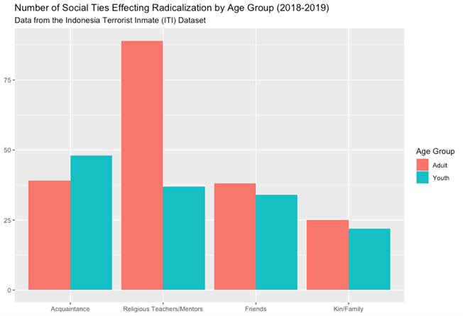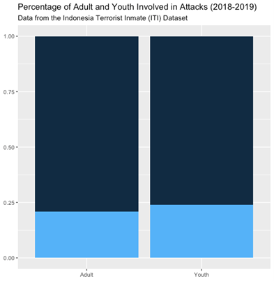 This article aims to address this gap by analysing the broad patterns of youth involvement in Indonesian terrorist organisations and networks. Specifically, it explores three key questions: i) How frequently are youths involved in terrorist organisations and networks? ii) Through which platforms and under whose influence, if any, do youths become involved? iii) What roles and tasks do youths take up once they join? To answer these questions, the study uses the author’s Indonesian Terrorist Inmate (ITI) dataset, which contains radicalisation and terrorist career information for over 400 terrorist suspects arrested between 2018 and 2019. Following this section, the article provides a literature review on Indonesian youth radicalisation, before analysing the broader patterns of youth involvement. It concludes with a discussion of the implications for the emerging phenomenon of memetic far-right inspired youth violence.