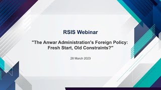 RSIS Webinar on “The Anwar Administration’s Foreign Policy: Fresh Start, Old Constraints?”