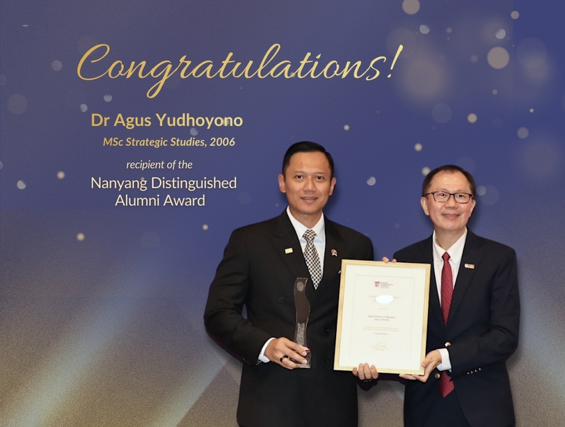 In recognition of his distinguished contributions to defence, public service, and national development, Nanyang Technological University is proud to present the Nanyang Distinguished Alumni Award 2025 to Dr Agus Harimurti Yudhoyono (MSc Strategic Studies, 2006).
