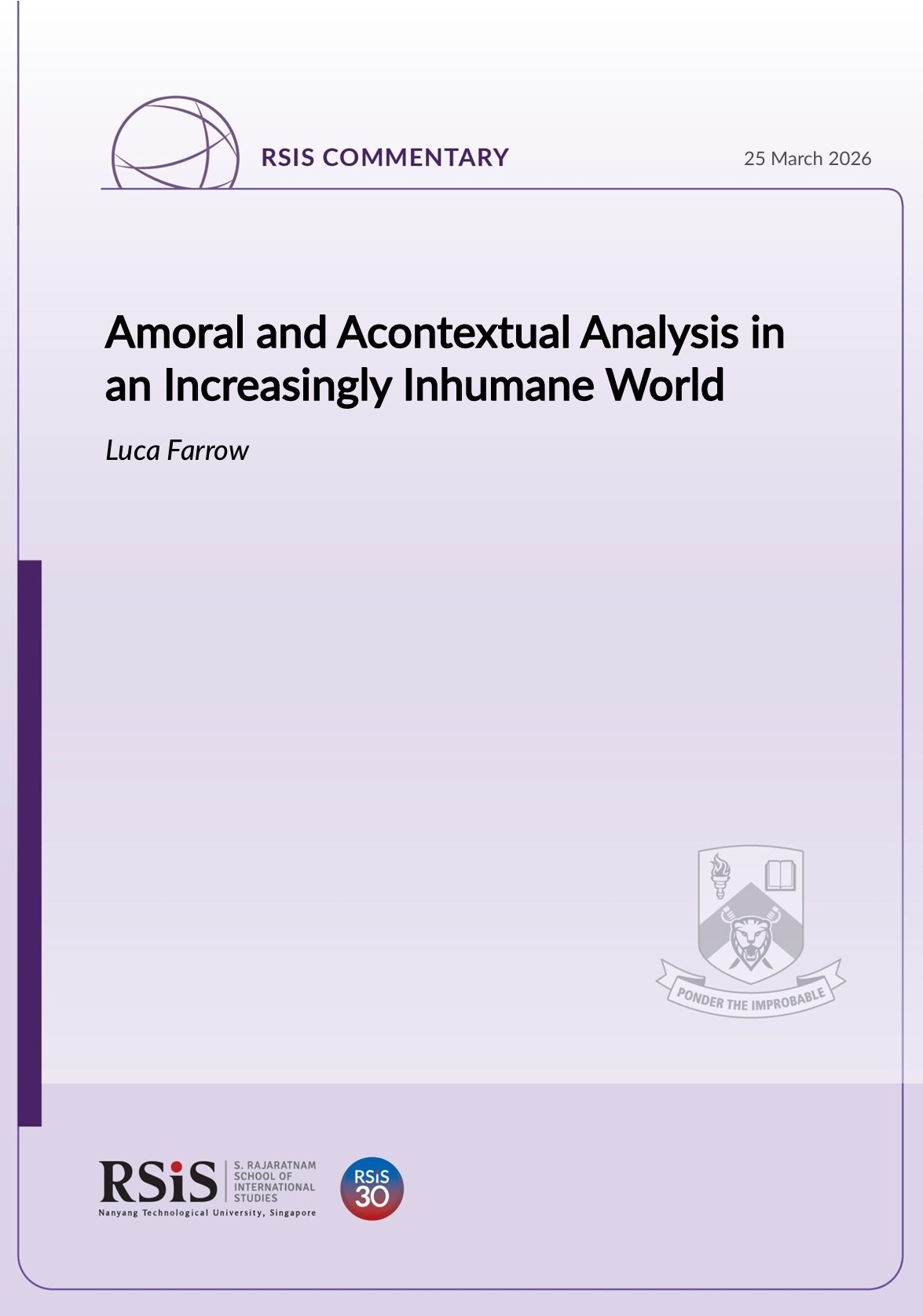 Luca Farrow is an Associate Research Fellow in the Studies in Inter-Religious Relations in Plural Societies (SRP) Programme at S. Rajaratnam School of International Studies (RSIS), Nanyang Technological University (NTU), Singapore.