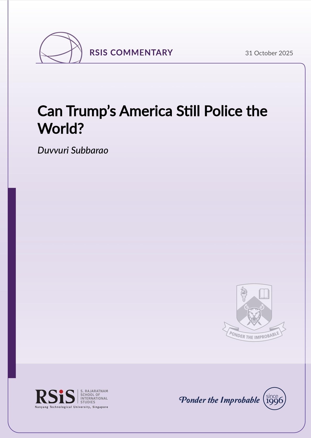 Dr Duvvuri Subbarao was governor of the Reserve Bank of India for five years (2008-2013) and is an occasional visiting fellow at the S. Rajaratnam School of International Studies (RSIS), Nanyang Technological University (NTU), Singapore.