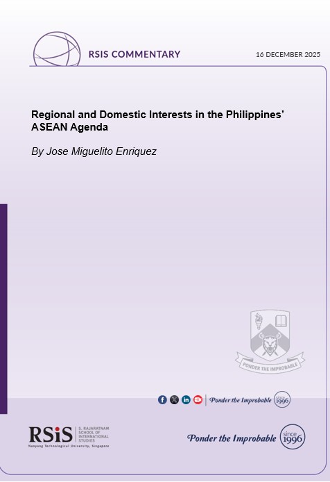 Jose Miguelito Enriquez is an Associate Research Fellow in the Centre for Multilateralism Studies at S. Rajaratnam School of International Studies (RSIS), Nanyang Technological University (NTU), Singapore.