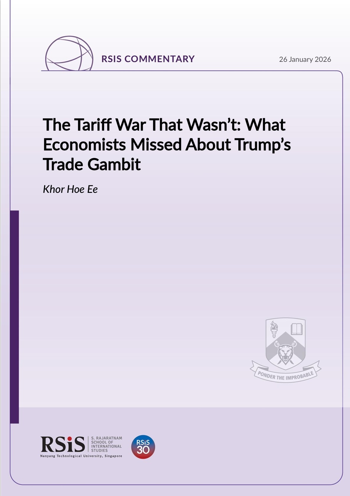 Dr Khoe Hoe Ee is NTUC Professor of International Economic Relations at the S. Rajaratnam School of International Studies (RSIS), Nanyang Technological University (NTU), Singapore. He was the former Chief Economist of the ASEAN+3 Macroeconomic Research Office. This commentary was originally published in The Business Times on 13 January 2026. It is republished here with permission.
